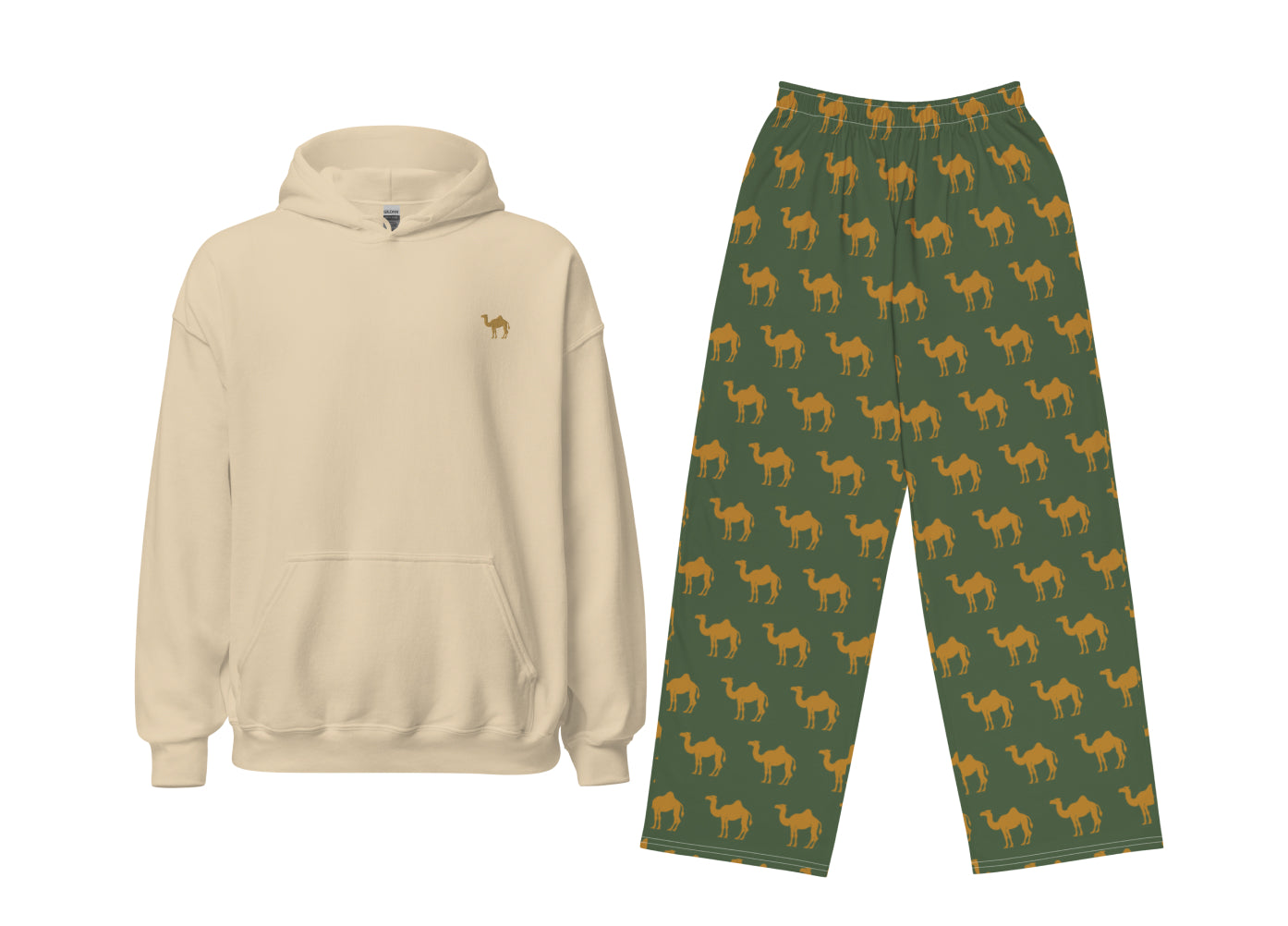 مجموعة هودي خفيف وبنطال الجمل (رملي + توم ثم)